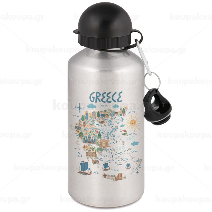 Χάρτης Ελλάδος, Μεταλλικό παγούρι νερού, Ασημένιο, αλουμινίου 500ml