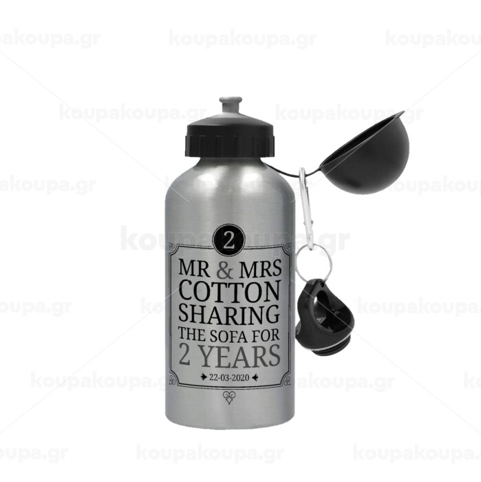Mr & Mrs Sharing the sofa, Μεταλλικό παγούρι νερού, Ασημένιο, αλουμινίου 500ml