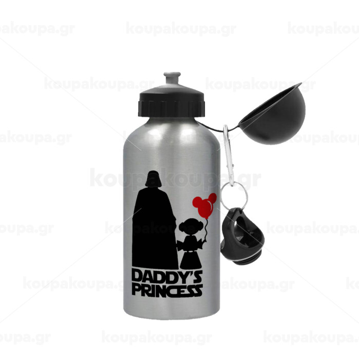 Daddy's princess, Μεταλλικό παγούρι νερού, Ασημένιο, αλουμινίου 500ml
