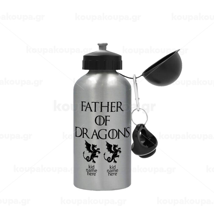 GOT, Father of Dragons (με ονόματα παιδικά), Μεταλλικό παγούρι νερού, Ασημένιο, αλουμινίου 500ml