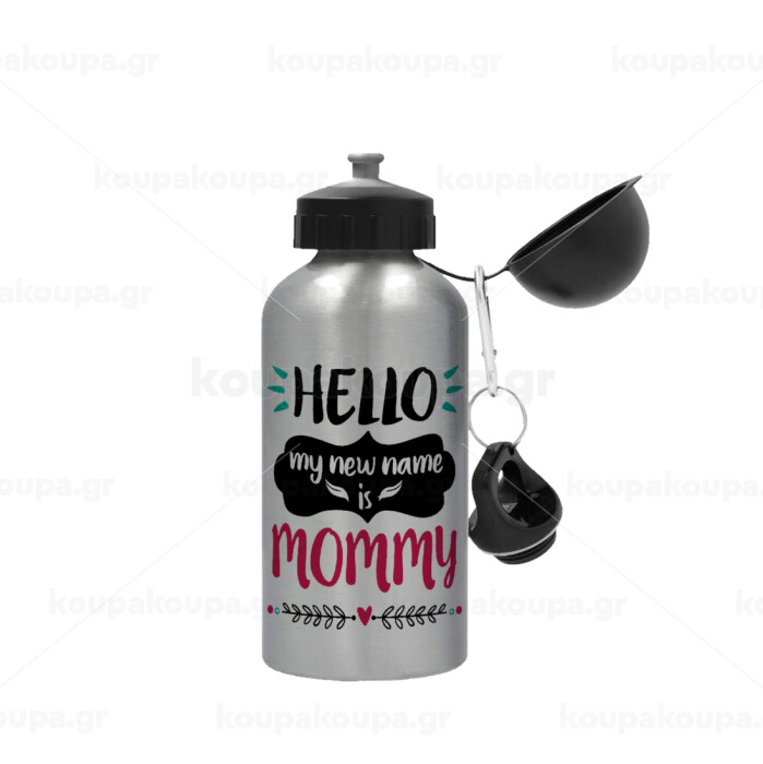 Hello, my new name is Mommy, Μεταλλικό παγούρι νερού, Ασημένιο, αλουμινίου 500ml