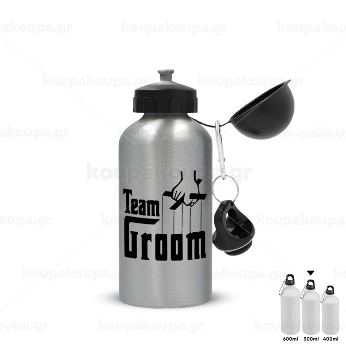 Team Groom, Μεταλλικό παγούρι νερού, Ασημένιο, αλουμινίου 500ml