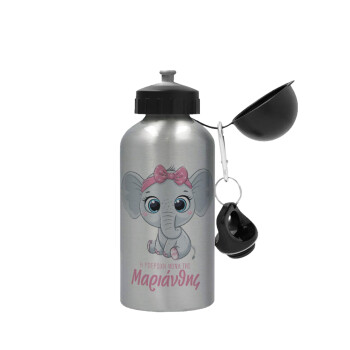 Η νονά μου, ελεφαντάκι ροζ, Μεταλλικό παγούρι νερού, Ασημένιο, αλουμινίου 500ml