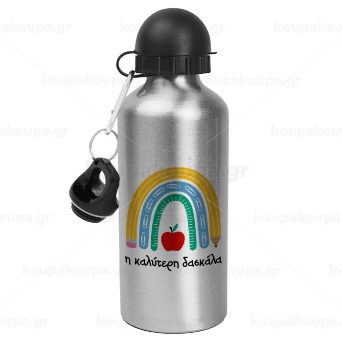Η καλύτερη δασκάλα, Μεταλλικό παγούρι νερού, Ασημένιο, αλουμινίου 500ml