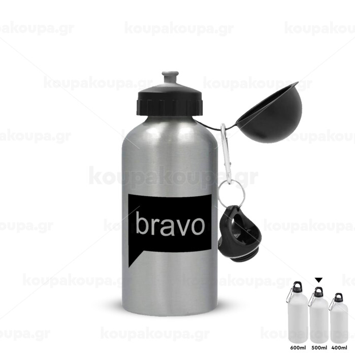 Bravo, Μεταλλικό παγούρι νερού, Ασημένιο, αλουμινίου 500ml