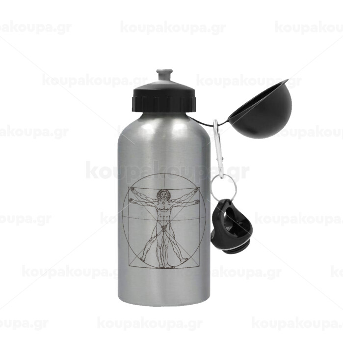 Leonardo da vinci Vitruvian Man, Μεταλλικό παγούρι νερού, Ασημένιο, αλουμινίου 500ml