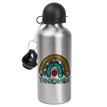 Teacher, Μεταλλικό παγούρι νερού, Ασημένιο, αλουμινίου 500ml