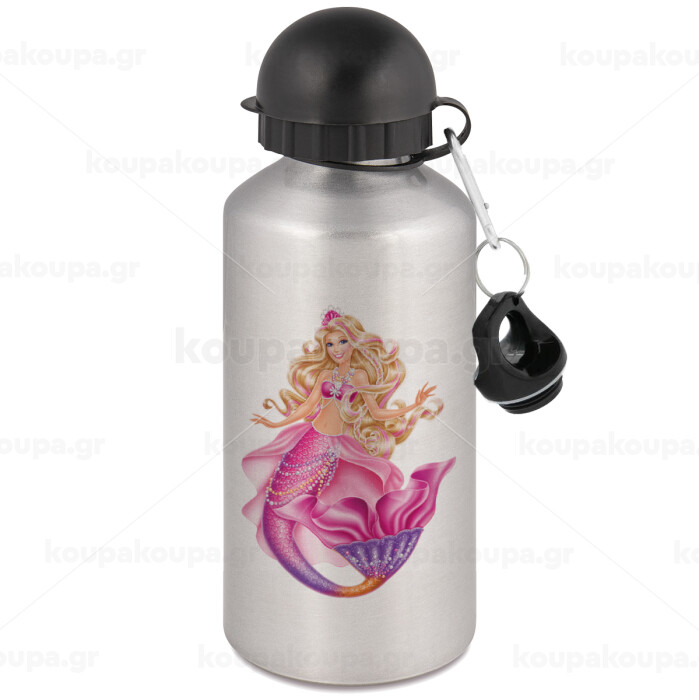 Barbie γοργόνα , Μεταλλικό παγούρι νερού, Ασημένιο, αλουμινίου 500ml