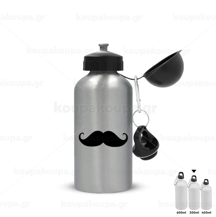 Μουστάκι, Μεταλλικό παγούρι νερού, Ασημένιο, αλουμινίου 500ml
