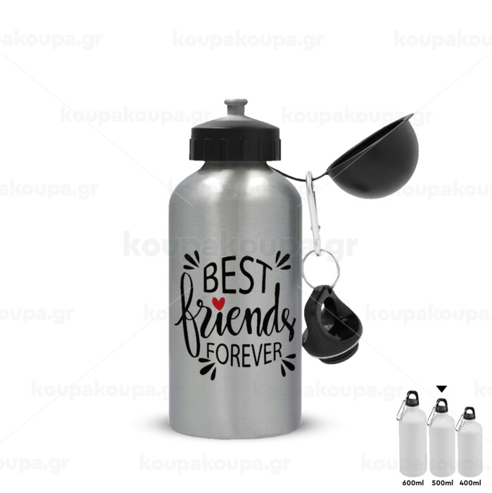Best Friends forever, Μεταλλικό παγούρι νερού, Ασημένιο, αλουμινίου 500ml
