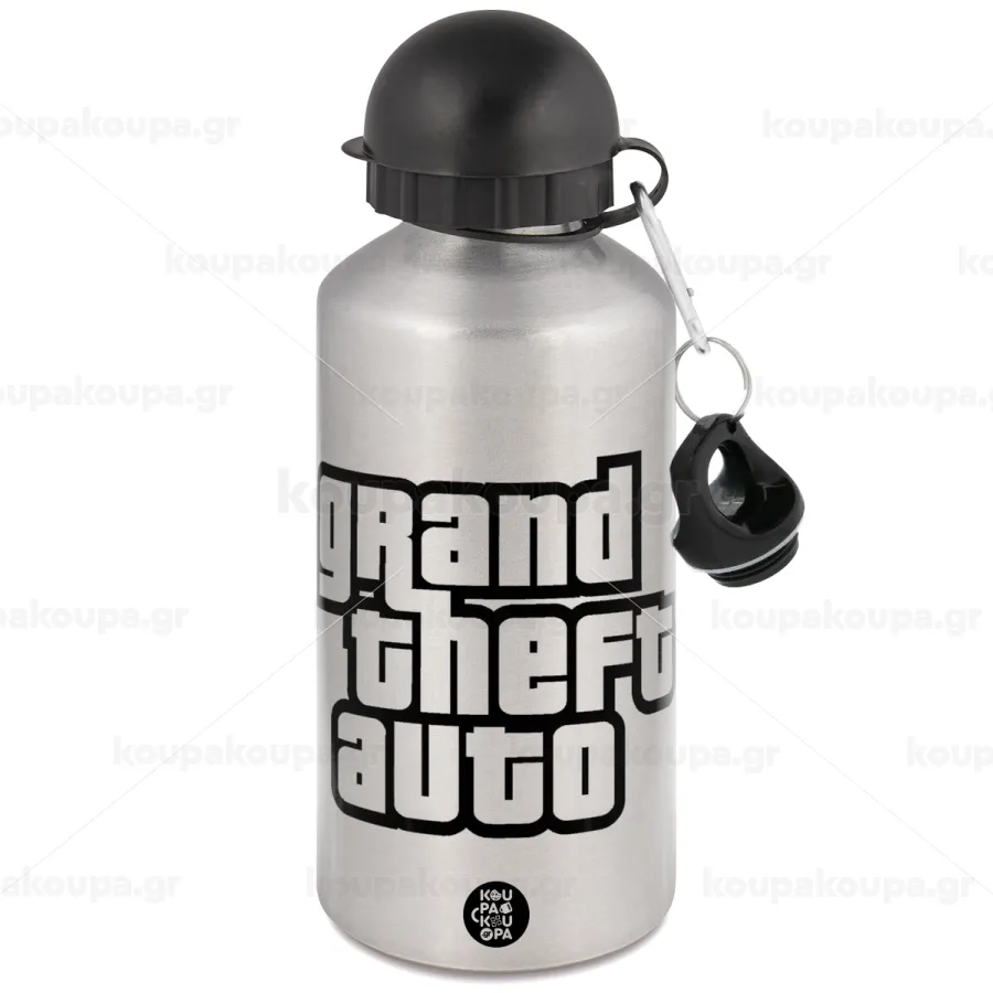 GTA (grand theft auto), Μεταλλικό παγούρι νερού, Ασημένιο, αλουμινίου 500ml