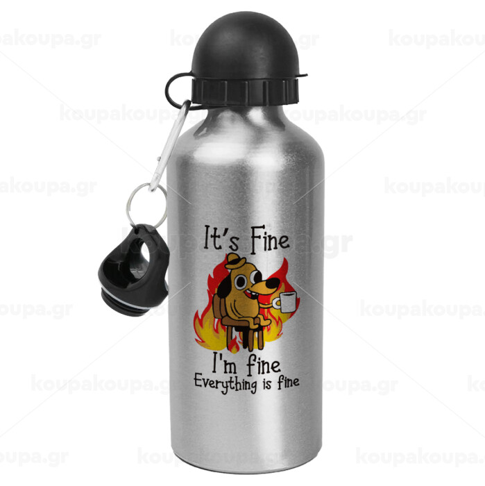 It's Fine I'm Fine Everything Is Fine, Μεταλλικό παγούρι νερού, Ασημένιο, αλουμινίου 500ml