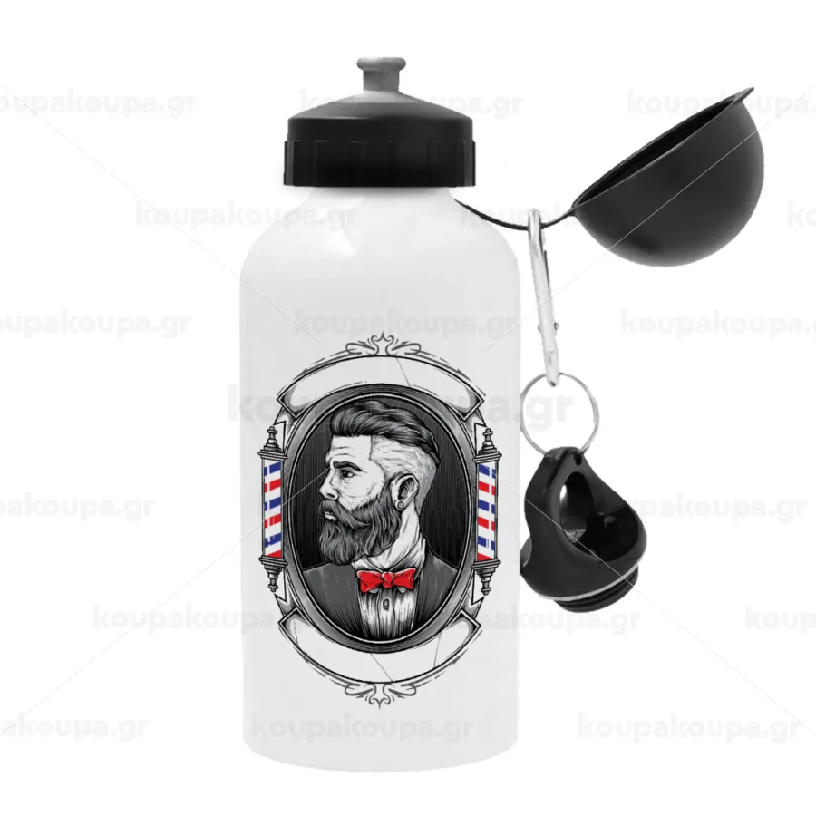 Barber shop, Μεταλλικό παγούρι νερού, Λευκό, αλουμινίου 500ml