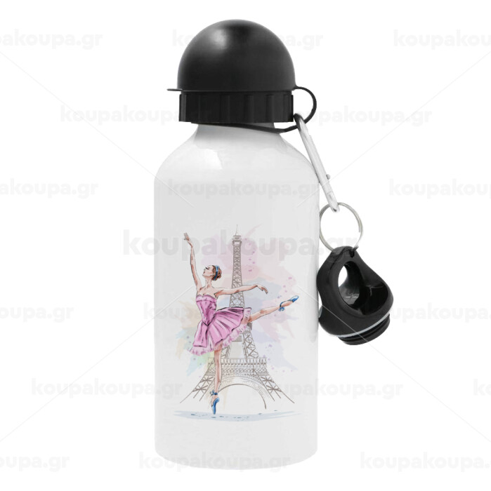 Ballerina in Paris, Μεταλλικό παγούρι νερού, Λευκό, αλουμινίου 500ml