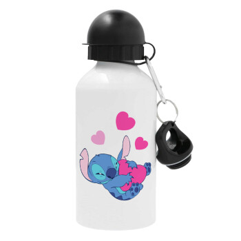 Lilo & Stitch hugs and hearts, Μεταλλικό παγούρι νερού, Λευκό, αλουμινίου 500ml