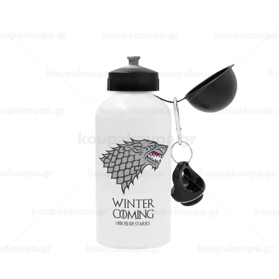GOT House of Starks, winter coming, Μεταλλικό παγούρι νερού, Λευκό, αλουμινίου 500ml