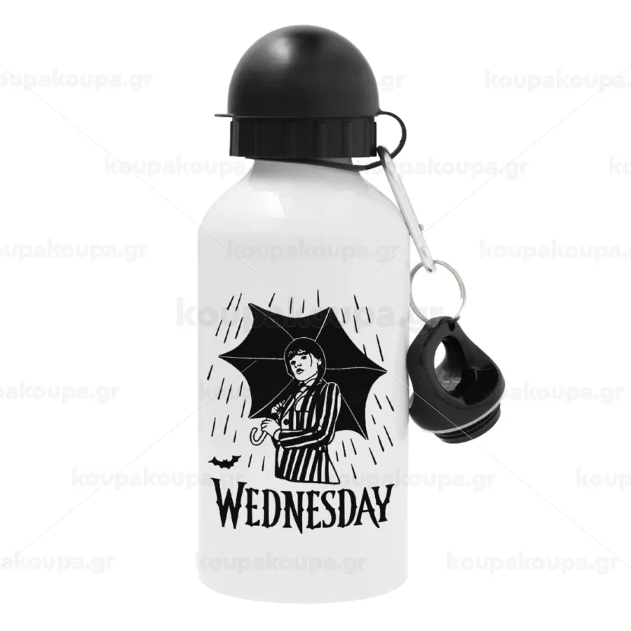 Wednesday Addams, Μεταλλικό παγούρι νερού, Λευκό, αλουμινίου 500ml