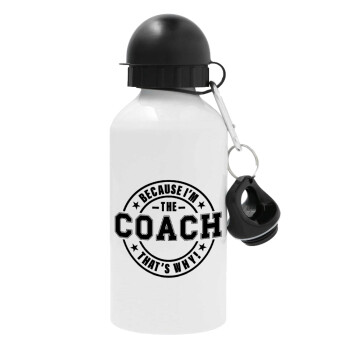 Because i'm the Coach, Μεταλλικό παγούρι νερού, Λευκό, αλουμινίου 500ml
