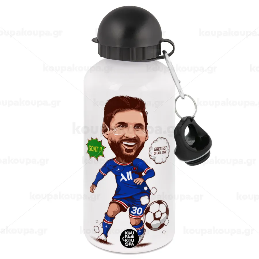 Lionel Messi drawing, Μεταλλικό παγούρι νερού, Λευκό, αλουμινίου 500ml