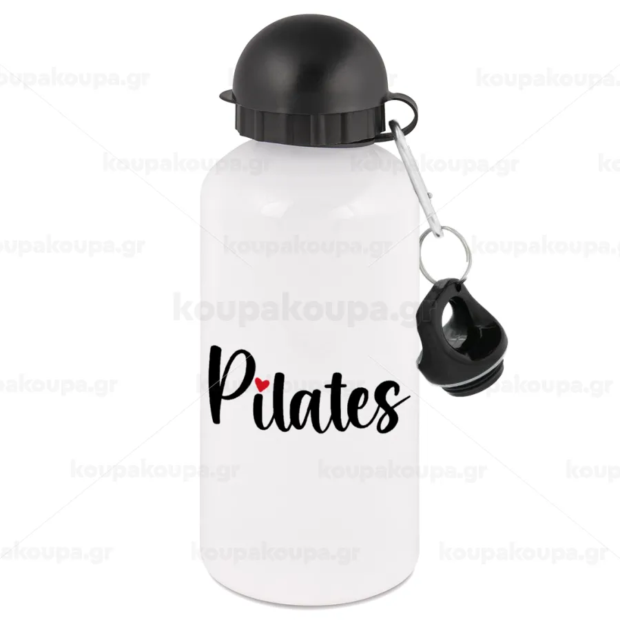 Pilates love, Μεταλλικό παγούρι νερού, Λευκό, αλουμινίου 500ml