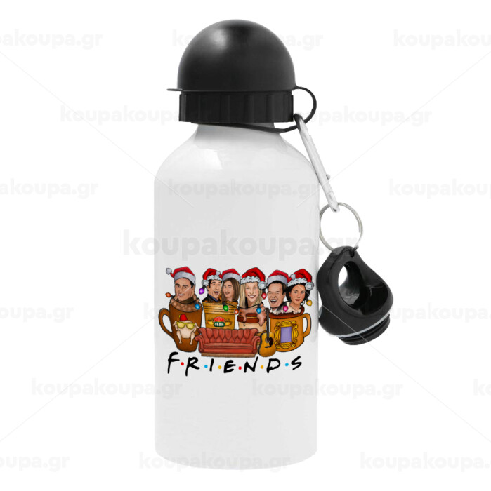 FRIENDS xmas, Μεταλλικό παγούρι νερού, Λευκό, αλουμινίου 500ml