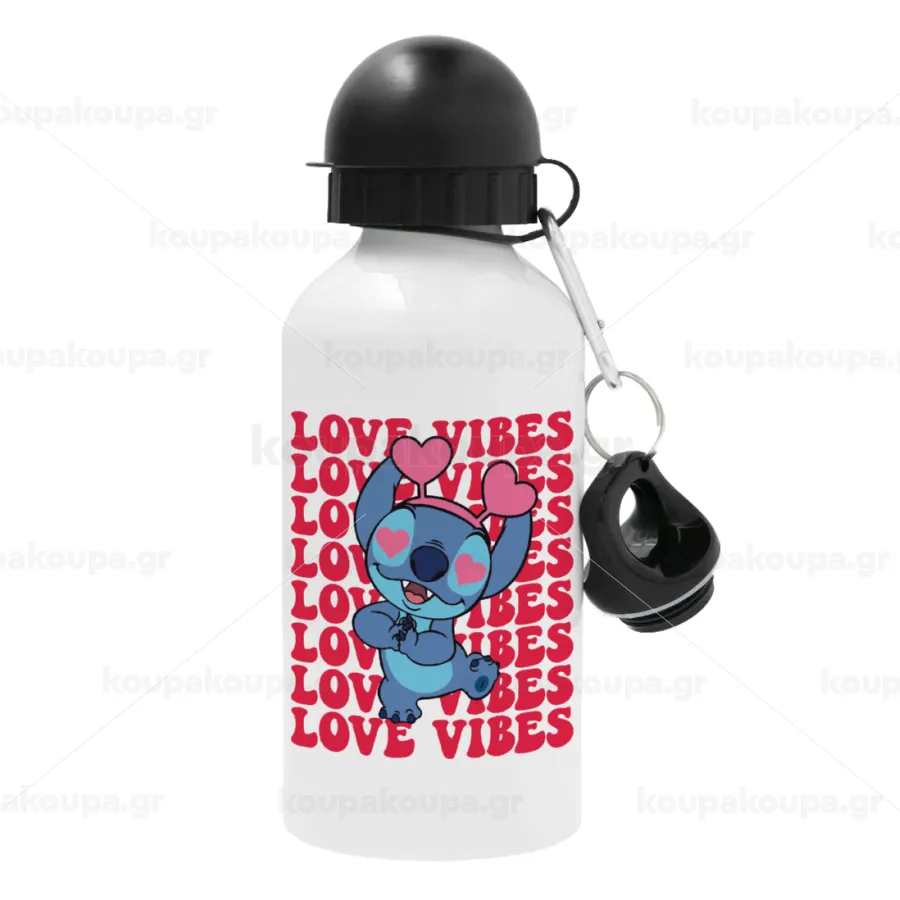 Lilo & Stitch Love vibes, Μεταλλικό παγούρι νερού, Λευκό, αλουμινίου 500ml