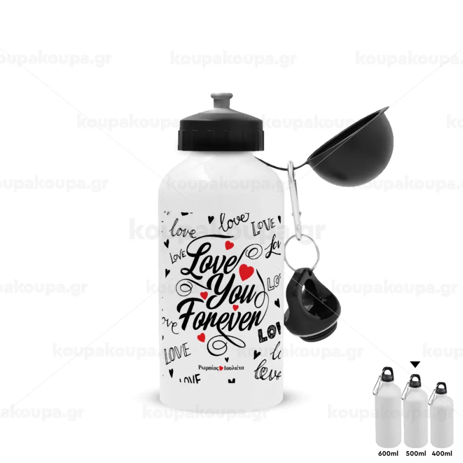Love You Forever, Μεταλλικό παγούρι νερού, Λευκό, αλουμινίου 500ml