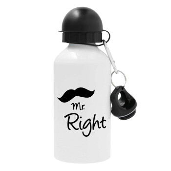 Mr right Mustache, Μεταλλικό παγούρι νερού, Λευκό, αλουμινίου 500ml