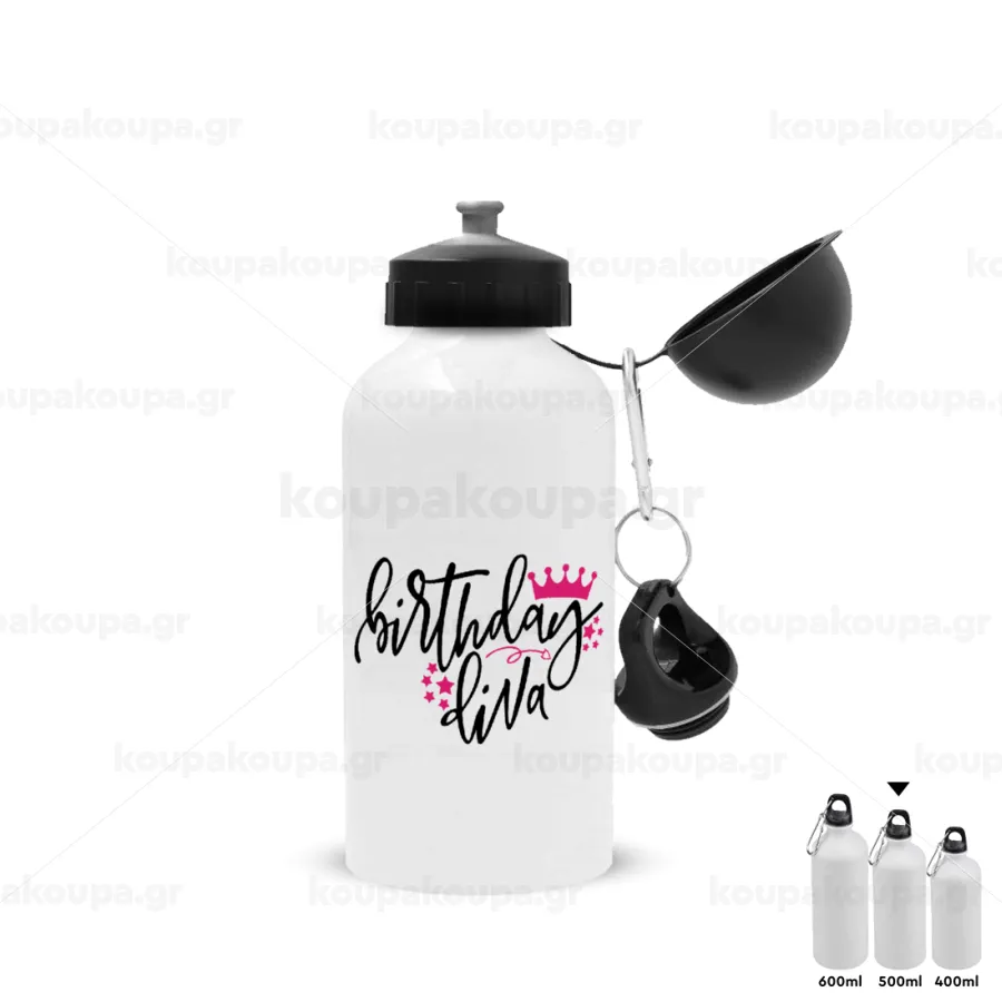 Birthday Diva queen, Μεταλλικό παγούρι νερού, Λευκό, αλουμινίου 500ml