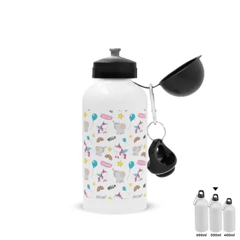 Happy Clouds Doodle, Μεταλλικό παγούρι νερού, Λευκό, αλουμινίου 500ml