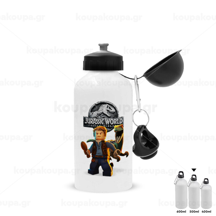 Jurassic world, Μεταλλικό παγούρι νερού, Λευκό, αλουμινίου 500ml
