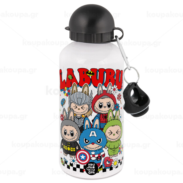 Labubu superheroes, Μεταλλικό παγούρι νερού, Λευκό, αλουμινίου 500ml