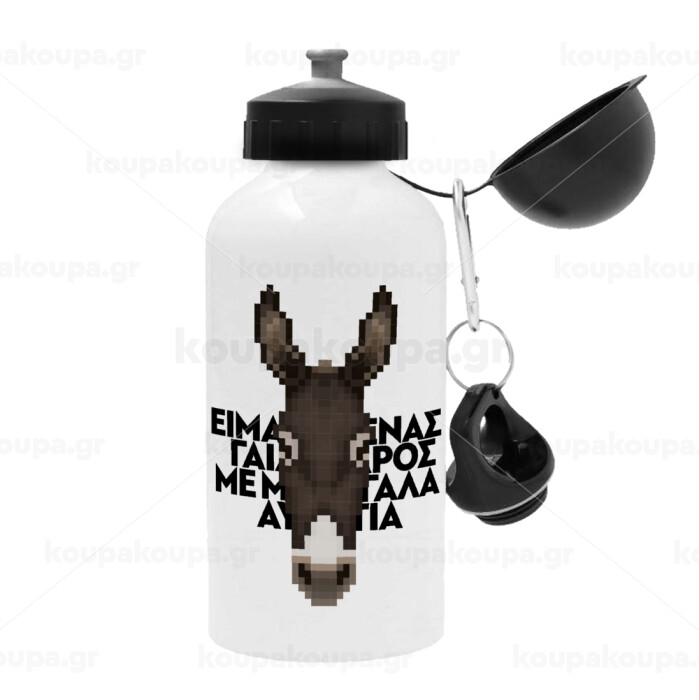 Είμαι ένας γάιδαρος με μεγάλα αυτιά., Μεταλλικό παγούρι νερού, Λευκό, αλουμινίου 500ml