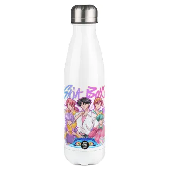 Huntrix Saja Boys, Μεταλλικό παγούρι θερμός Λευκό (Stainless steel), διπλού τοιχώματος, 500ml