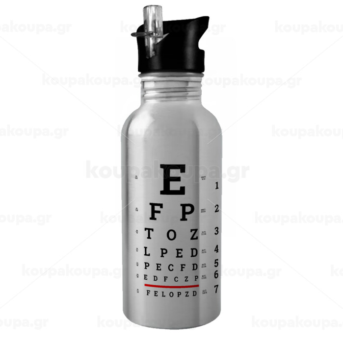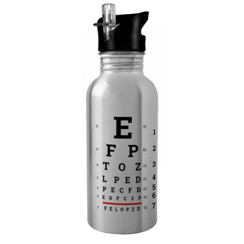 EYE test chart, Παγούρι νερού Ασημένιο με καλαμάκι, ανοξείδωτο ατσάλι 600ml