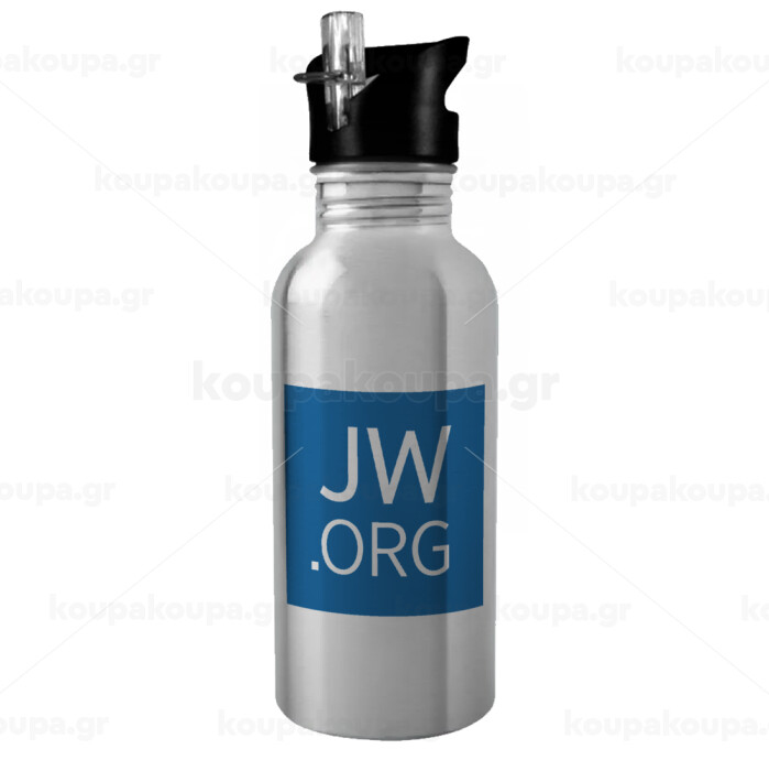 JW.ORG, Παγούρι νερού Ασημένιο με καλαμάκι, ανοξείδωτο ατσάλι 600ml