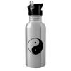 Yin Yang, Παγούρι νερού Ασημένιο με καλαμάκι, ανοξείδωτο ατσάλι 600ml
