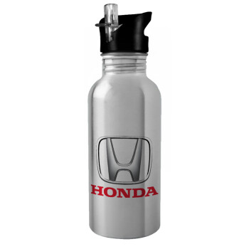 HONDA, Παγούρι νερού Ασημένιο με καλαμάκι, ανοξείδωτο ατσάλι 600ml