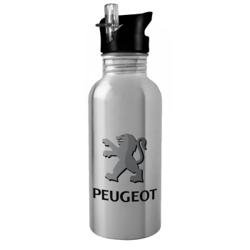 Peugeot, Παγούρι νερού Ασημένιο με καλαμάκι, ανοξείδωτο ατσάλι 600ml