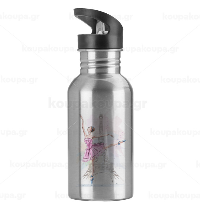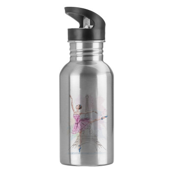 Ballerina in Paris, Παγούρι νερού Ασημένιο με καλαμάκι, ανοξείδωτο ατσάλι 600ml