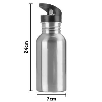 Hellfire CLub, Stranger Things, Παγούρι νερού Ασημένιο με καλαμάκι, ανοξείδωτο ατσάλι 600ml