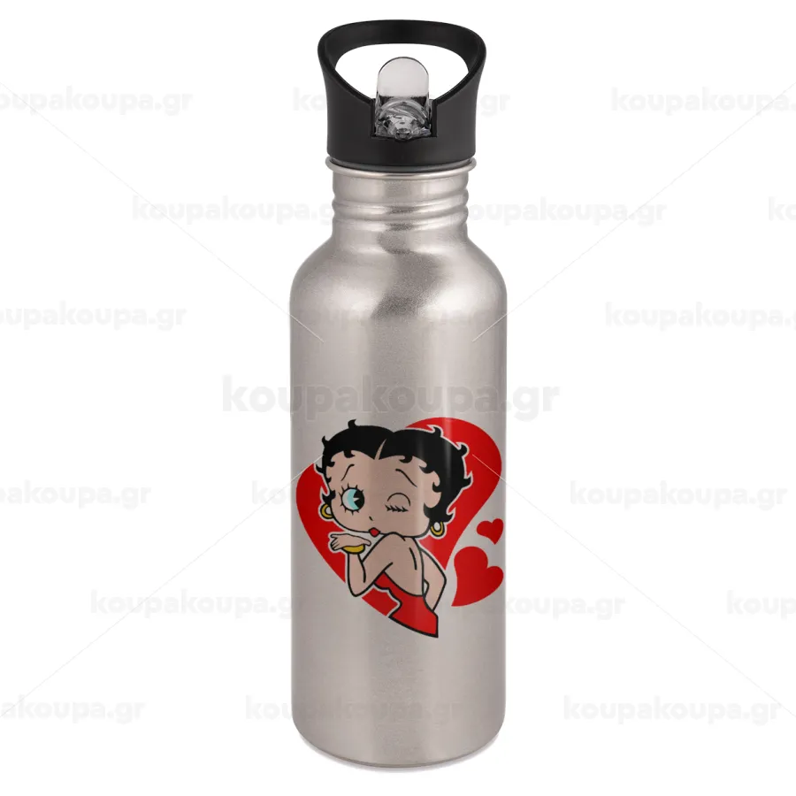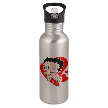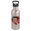 Betty Boop, Παγούρι νερού Ασημένιο με καλαμάκι, ανοξείδωτο ατσάλι 600ml