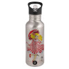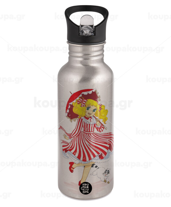 Candy, Παγούρι νερού Ασημένιο με καλαμάκι, ανοξείδωτο ατσάλι 600ml