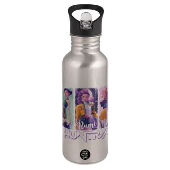 HUNTR/X K-pop girl group, Παγούρι νερού Ασημένιο με καλαμάκι, ανοξείδωτο ατσάλι 600ml