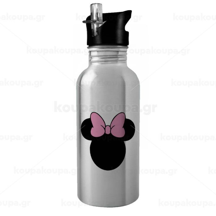 mouse girl, Παγούρι νερού Ασημένιο με καλαμάκι, ανοξείδωτο ατσάλι 600ml