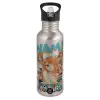 Nami One Piece, Παγούρι νερού Ασημένιο με καλαμάκι, ανοξείδωτο ατσάλι 600ml