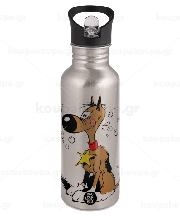 Rantanplan (Ρανταπλάν), Παγούρι νερού Ασημένιο με καλαμάκι, ανοξείδωτο ατσάλι 600ml