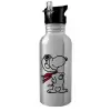 Snoopy ο πιλότος, Παγούρι νερού Ασημένιο με καλαμάκι, ανοξείδωτο ατσάλι 600ml