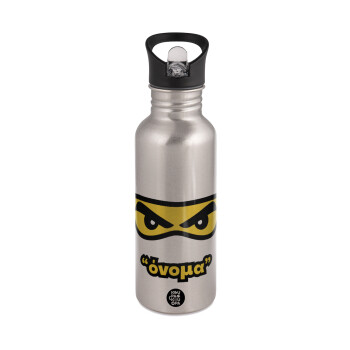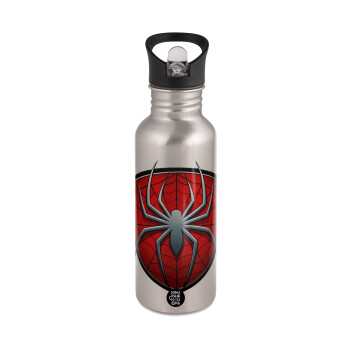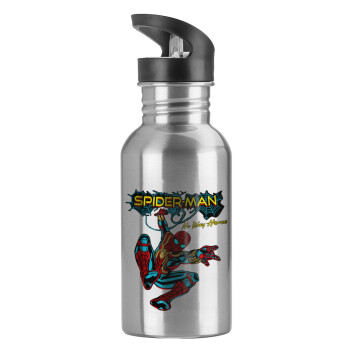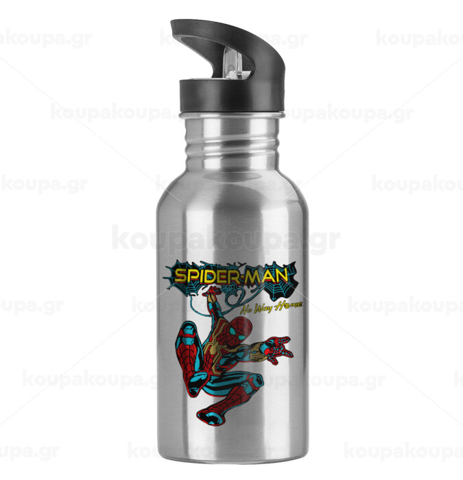 Spiderman no way home, Παγούρι νερού Ασημένιο με καλαμάκι, ανοξείδωτο ατσάλι 600ml