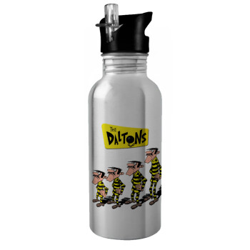 The Daltons, Παγούρι νερού Ασημένιο με καλαμάκι, ανοξείδωτο ατσάλι 600ml
